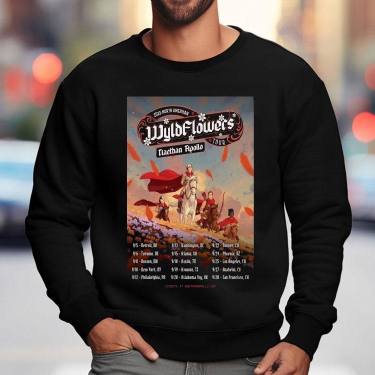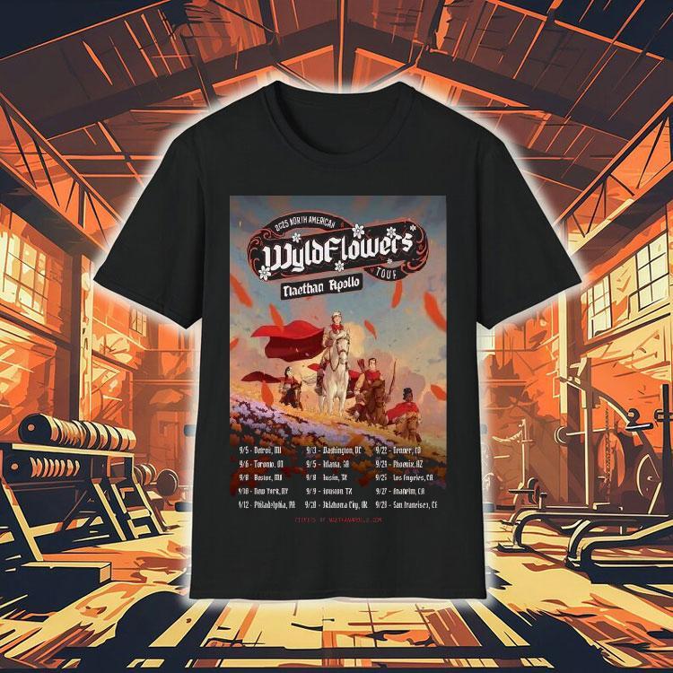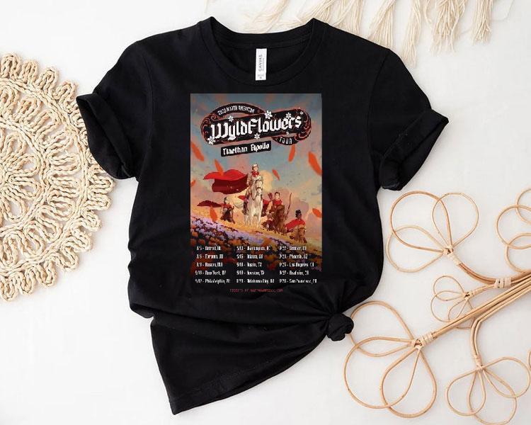 Casual cool, anytime wear with Naethan Apollo Wyldflowers 2025 Tour Dates Shirt, join Naethan Apollo on his highly anticipated 2025 tour, as he takes the stage adorned in his signature Wyldflowers shirt. Experience a night of mesmerizing music and unforgettable energy, as he performs hits from his latest album. Don’t miss out on your chance to see this rising star live in concert.