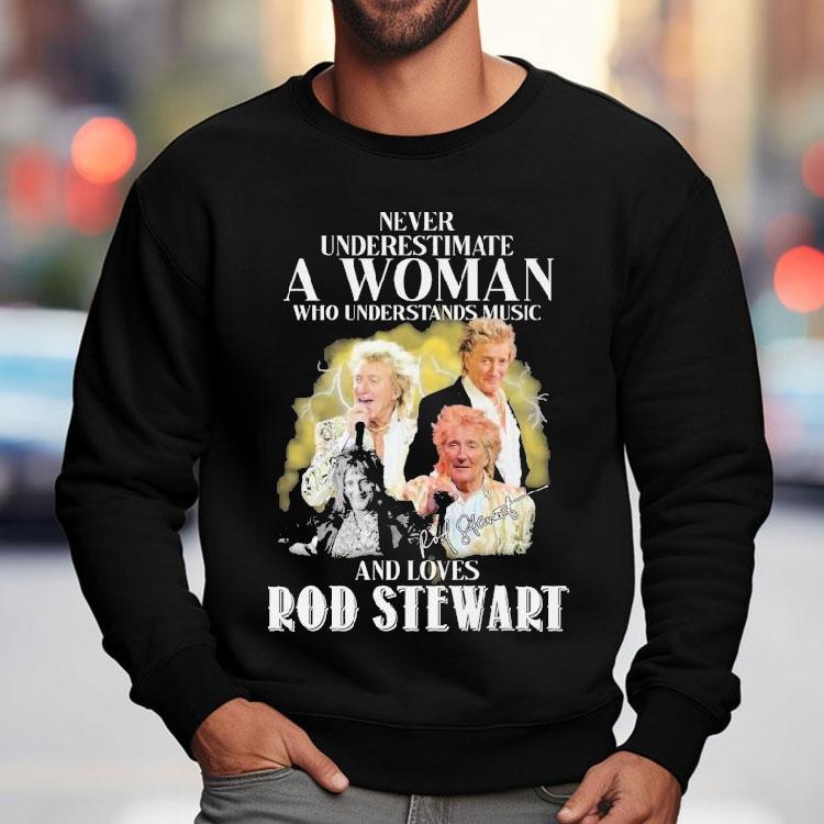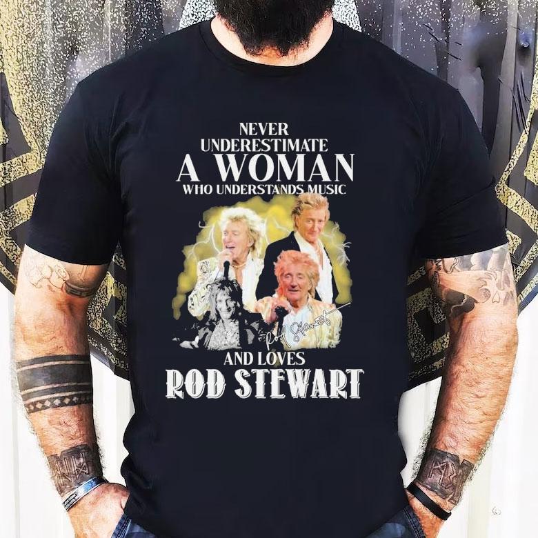 Versatile fashion, timeless appeal with Never Underestimate A Woman Who Understands Music And Loves Rod Stewart Signature Shirt, music has a way of bringing people together, and for one woman, it’s more than just a passion – it’s a deep understanding and connection. But don’t be fooled by her love for music and Rod Stewart, for she is not to be underestimated. Her signature shirt speaks volumes of her strength and confidence.