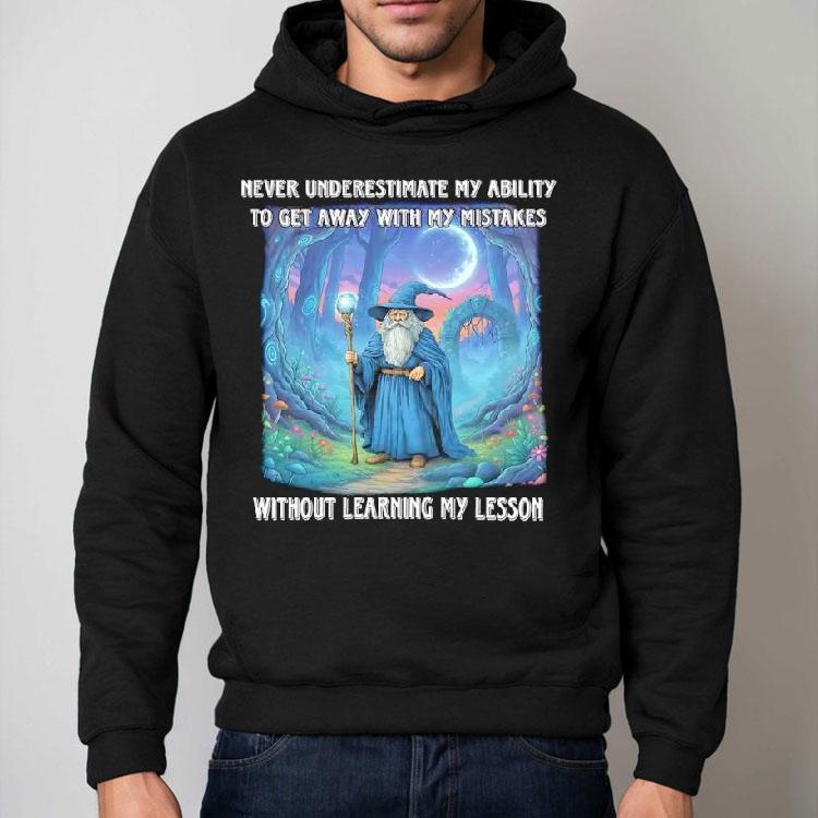 Chic minimalism, everyday wear with Never Underestimate My Ability To Get Away With My Mistakes Without Learning My Lesson Wizard Shirt, some may call it a talent, others may see it as a curse, but one thing is for sure: you should never underestimate my ability to get away with my mistakes without learning my lesson. And with the help of my trusty “Wizard Shirt,” I can make even the most dire situations disappear.