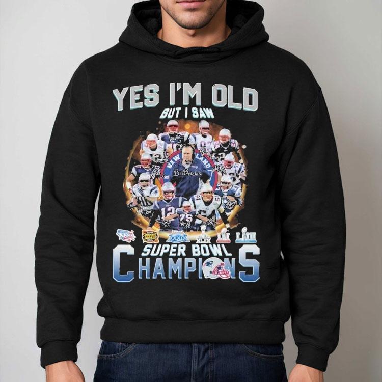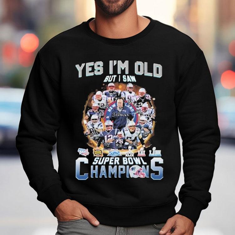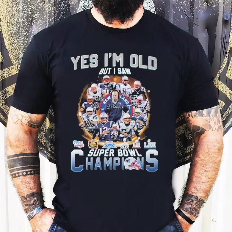Classic tee, endless possibilities with New England Patriots Yes I’m Old But I Saw Super Bowl Champions Signatures Shirt, as a dedicated fan of the New England Patriots, I proudly wear my Super Bowl Champions Signatures shirt, showcasing the many years of success for our beloved team. I may be older now, but I have fond memories of watching each victory and proudly displaying my loyalty through this shirt.