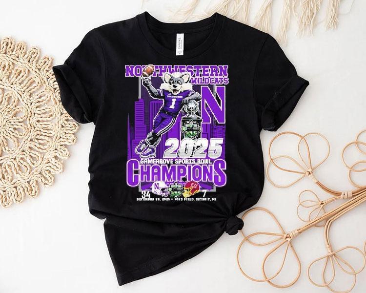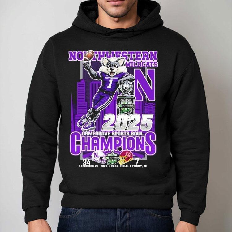 Classic tee, modern comfort with Northwestern Wildcats Vs Central Michigan Chippewas Gameabove Sports Bowl Champions 2025 Mascot Trophy Shirt, get ready for an epic showdown as the Northwestern Wildcats take on the Central Michigan Chippewas in the highly anticipated 2025 Sports Bowl Championship game! Fans from both sides are buzzing with excitement as they eagerly await to see who will walk away with the ultimate prize – the coveted Mascot Trophy. Don’t miss this thrilling clash of two top-ranked teams!