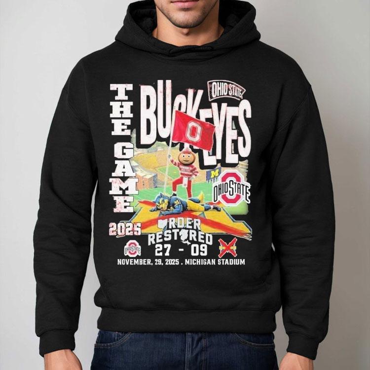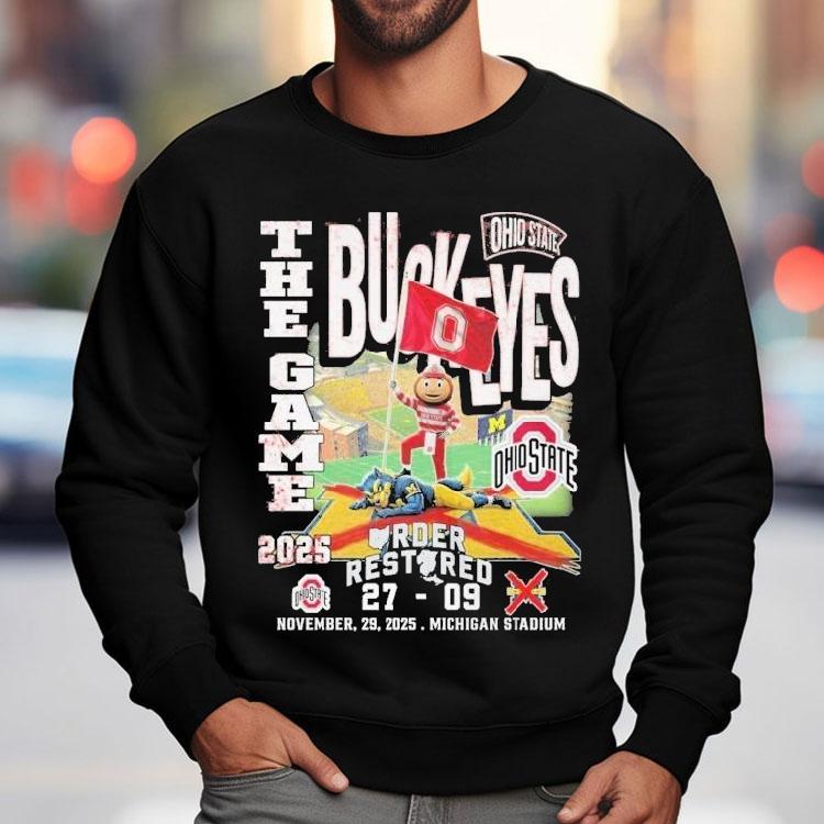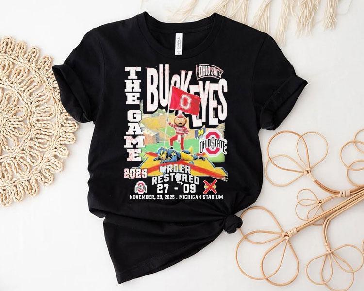 Chic minimalism, everyday wear with Ohio State Buckeyes Stomp Michigan Wolverines The Game Order Rest Red November 29 2025 Stadium Mascot Shirt, on November 29, 2025, the Ohio State Buckeyes stomped the Michigan Wolverines in “The Game” with a dominating performance. Fans packed the stadium, proudly wearing their mascot shirts in support of their team. The order was clear: Buckeyes reign supreme. It was a red November for Michigan as they couldn’t hold up against the Ohio State powerhouse.