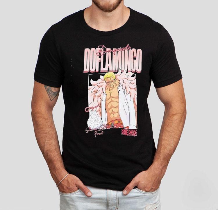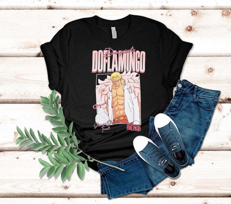 Casual sophistication with One Piece Doflamingo String-strong Fruit Shirt, as the wind whipped through the bustling streets of Dressrosa, all eyes turned towards the mysterious figure donning a striking shirt. The fabric seemed to glisten with an almost otherworldly shine, and upon closer inspection, one could see intricate strings woven into the design. This was the legendary One Piece Doflamingo String-strong Fruit shirt.