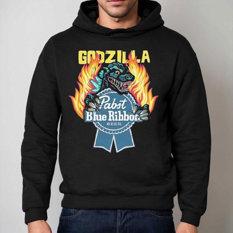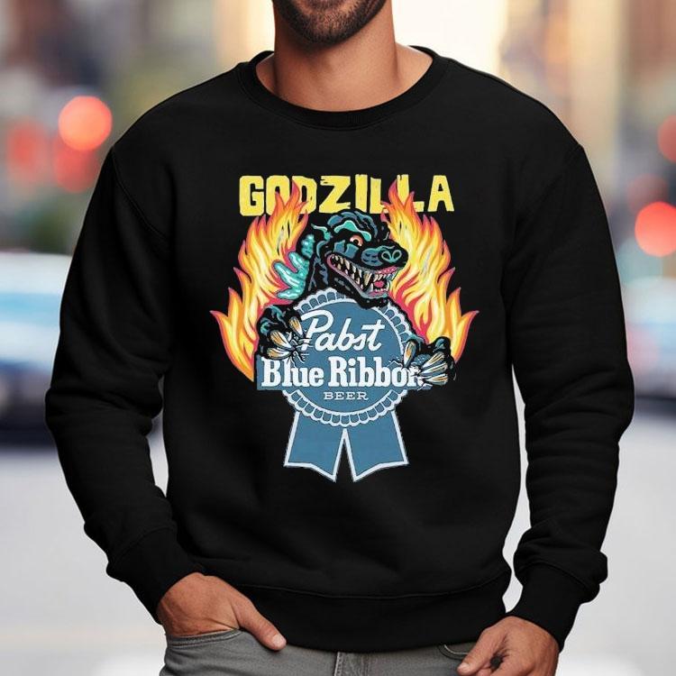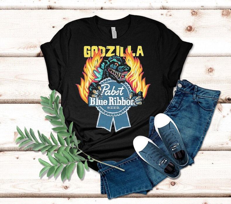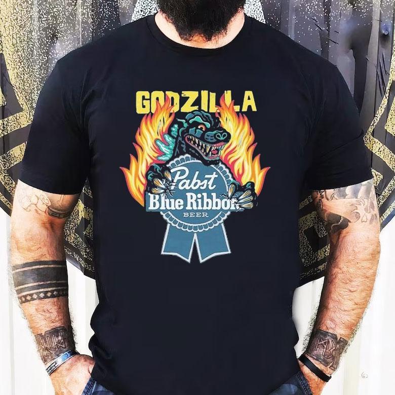 Effortless style, pure comfort with Pabst Blue Ribbon Flamed Godzilla Shirt, get ready to ignite your wardrobe with the ultimate combination of iconic beer and fierce creature with the Pabst Blue Ribbon Flamed Godzilla Shirt. This eye-catching shirt features a bold design of the legendary monster engulfed in flames, showcasing your love for both classic brews and epic monsters.