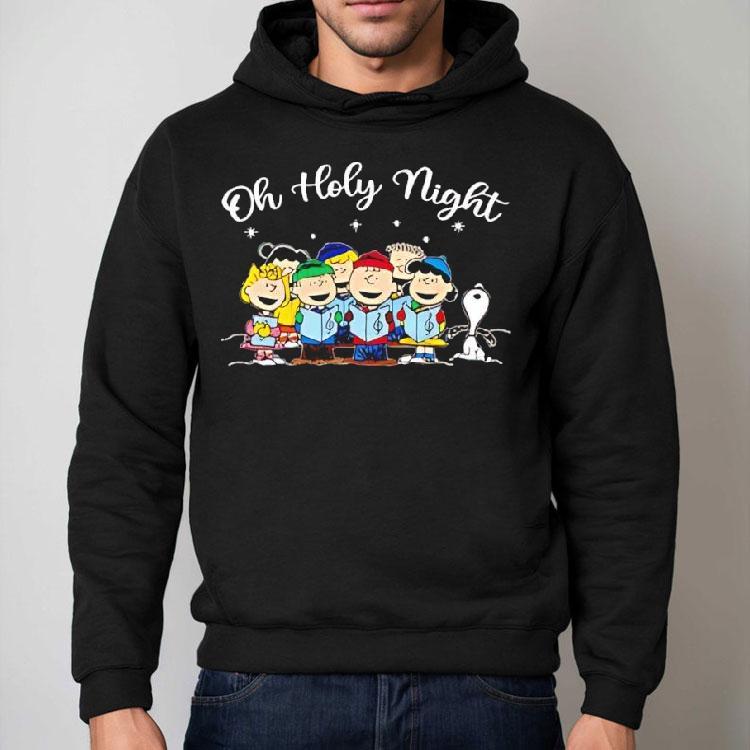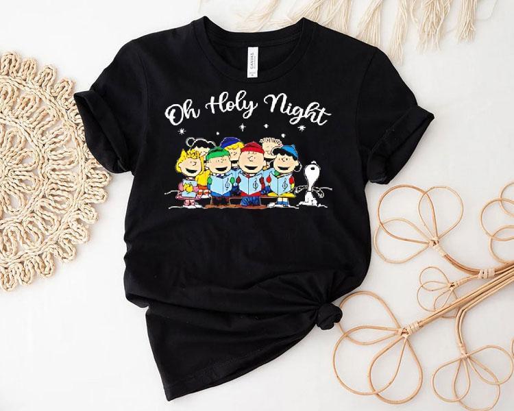 Wearable confidence booster with Peanuts Characters Oh Holy Night Christmas Carol Shirt, “Get into the holiday spirit with our limited edition Peanuts Characters Oh Holy Night Christmas Carol shirt! Featuring Snoopy, Charlie Brown and the gang singing their hearts out, this shirt is perfect for any fan of the beloved comic strip. Spread Christmas cheer and show off your love for these iconic characters.”
