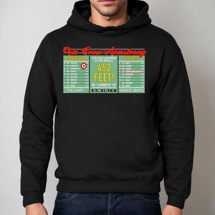 Chic comfort, all day with Pete Crow-armstrong Scoreboard Hit This Baseball Shirt, get ready to hit it out of the ballpark with the ultimate baseball shirt: the Pete Crow-Armstrong Scoreboard Hit. Show off your support for the rising star with this stylish and comfortable shirt that is perfect for game days or casual wear. Don’t strike out on this must-have piece for any baseball fan.