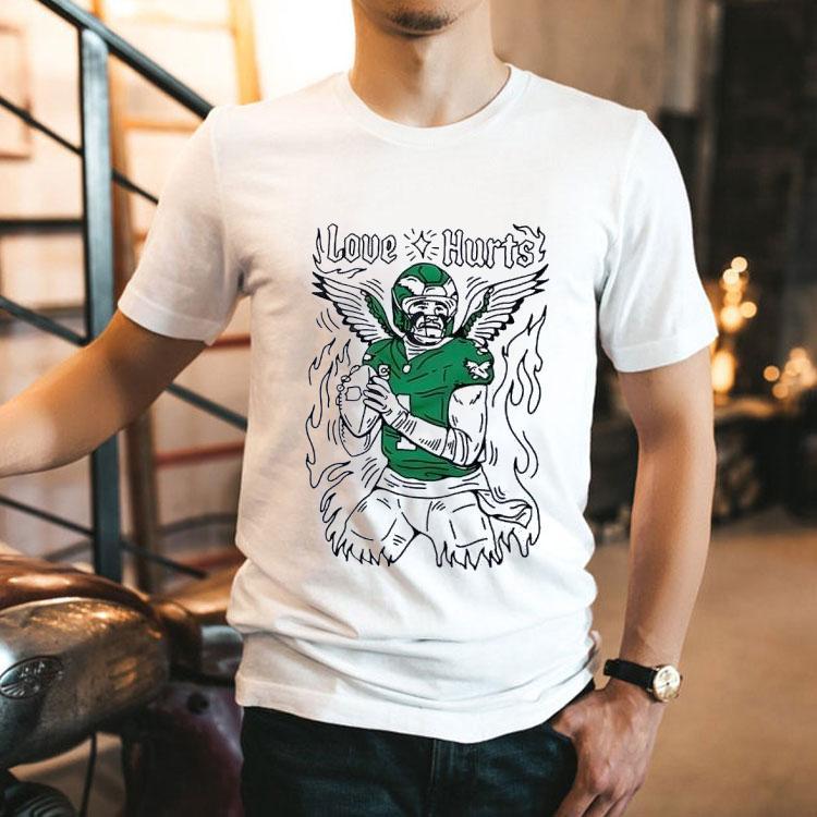 Casual luxury, anytime wear with Philadelphia Eagles Jalen Hurts Love Hurts Shirt, as the Philadelphia Eagles gear up for another exciting football season, fans are buzzing with anticipation. However, there’s one player that has captured the hearts of many with his determination, resilience, and talent. Jalen Hurts, the Eagles’ dynamic quarterback, has become an instant fan favorite and now, with the new “Love Hurts” shirt, supporters can show their admiration in style.