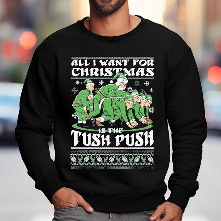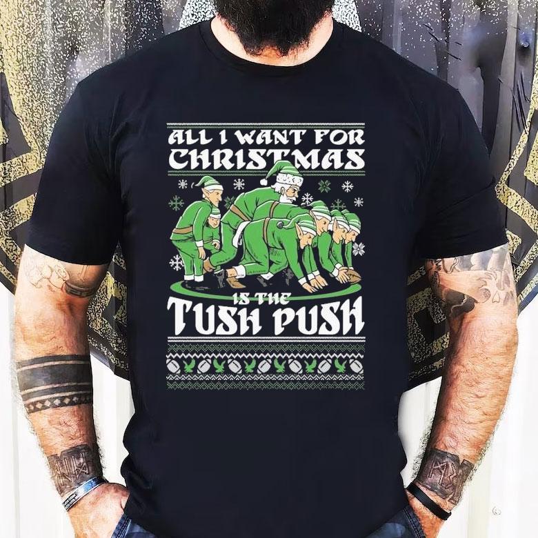 Effortless fashion update with Philadelphia Eagles Philly All I Want For Christmas Is The Tush Push Ugly Elfs Shirt, the holiday season is upon us and for die-hard Philadelphia Eagles fans, there’s nothing quite like showing off their team spirit with festive gear. This year, the ultimate addition to any Eagles fan’s wardrobe is the “Philly All I Want For Christmas Is The Tush Push Ugly Elfs Shirt”. Let’s take a closer look at this must-have holiday item.