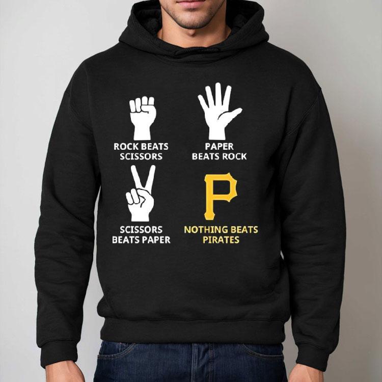 Versatile, stylish simplicity with Pittsburgh Pirates Nothing Beats Rock Beats Scissors Paper Beats Rock Scissors Beats Paper Shirt, are you a die-hard Pittsburgh Pirates fan looking for the ultimate way to show off your team pride? Look no further than the all-new “Nothing Beats Rock” shirt, featuring the iconic team logo in a fun and playful rock-paper-scissors design. Perfect for game days or casual wear, this shirt is a must-have for any true Pirates supporter.