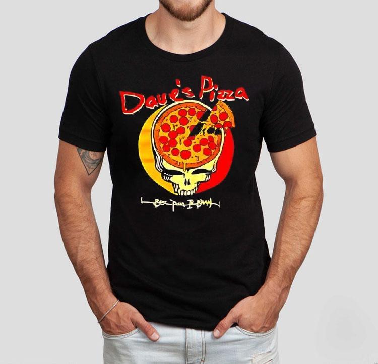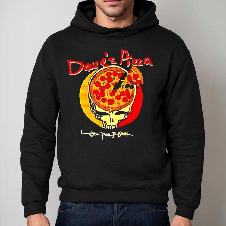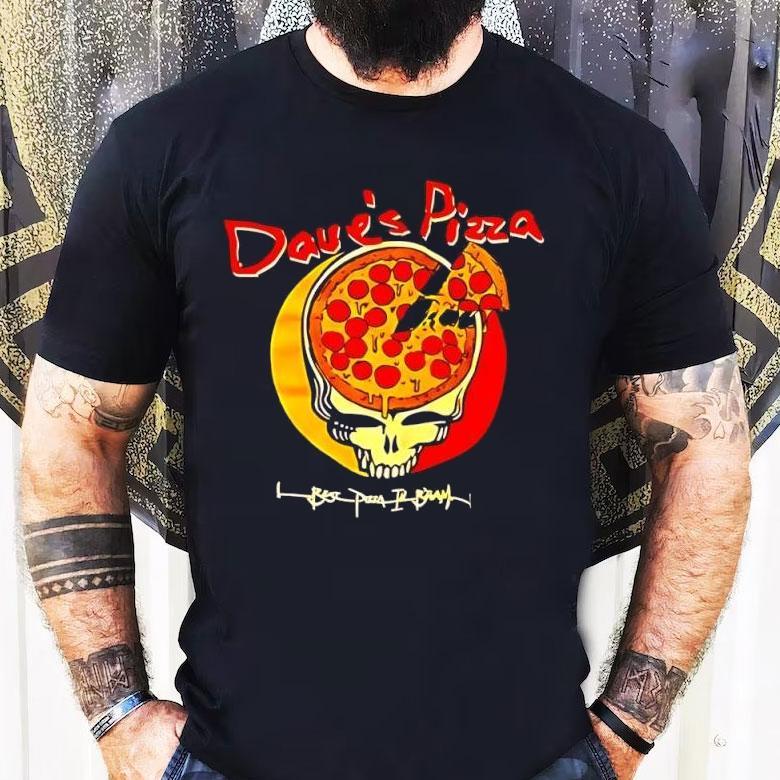 Classic tee, modern twist with Pizza Skull Grateful Dead’s Vs Dave’s Pizza Logo Shirt, pizza and rock n’ roll have always been a perfect pair, but now they’re getting a psychedelic twist. The Grateful Dead’s iconic skull logo is facing off against Dave’s Pizza logo on a new shirt design that’s sure to be a hit with music and pizza lovers alike. It’s time to rock out with a slice in hand!