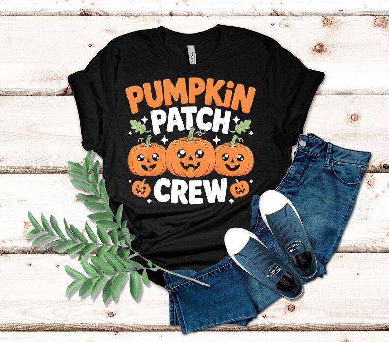 The perfect blank canvas with Pumpkin Patch Crew Halloween Shirt, get ready for Halloween with the perfect addition to your wardrobe – the Pumpkin Patch Crew Halloween Shirt! This festive shirt features a fun and playful design, perfect for any fall activities. Show off your love for all things Halloween with this must-have shirt for the season.