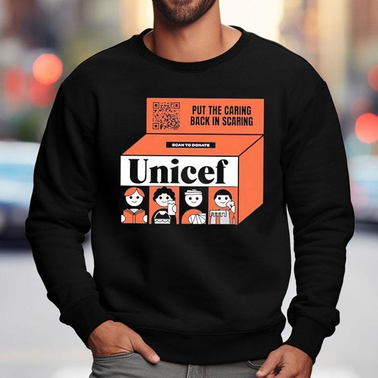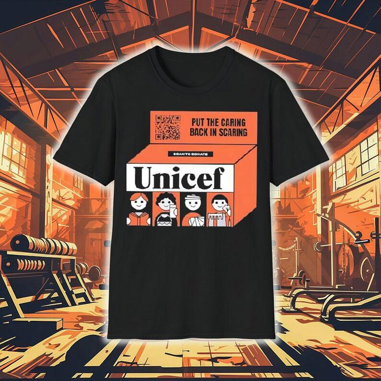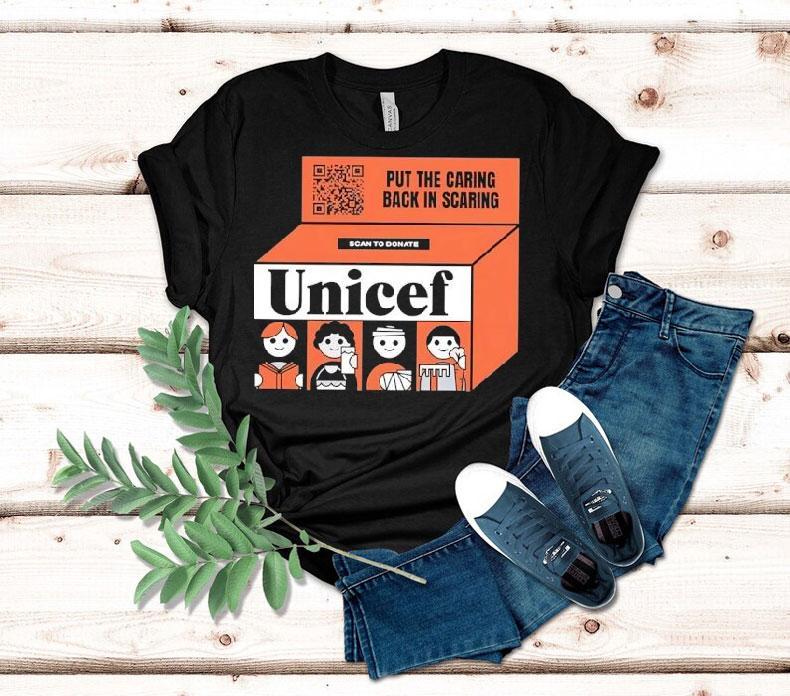 Staple piece, endless possibilities with Put The Caring Back In Scaring Scan To Donate Unicef Shirt, attention all Halloween lovers! Are you tired of the same old scary costumes and decorations? Well, it’s time to put the “caring” back in scaring with the new limited edition Unicef shirt. Not only will you look spooky, but you’ll also be making a difference with every purchase. How? Keep reading to find out!