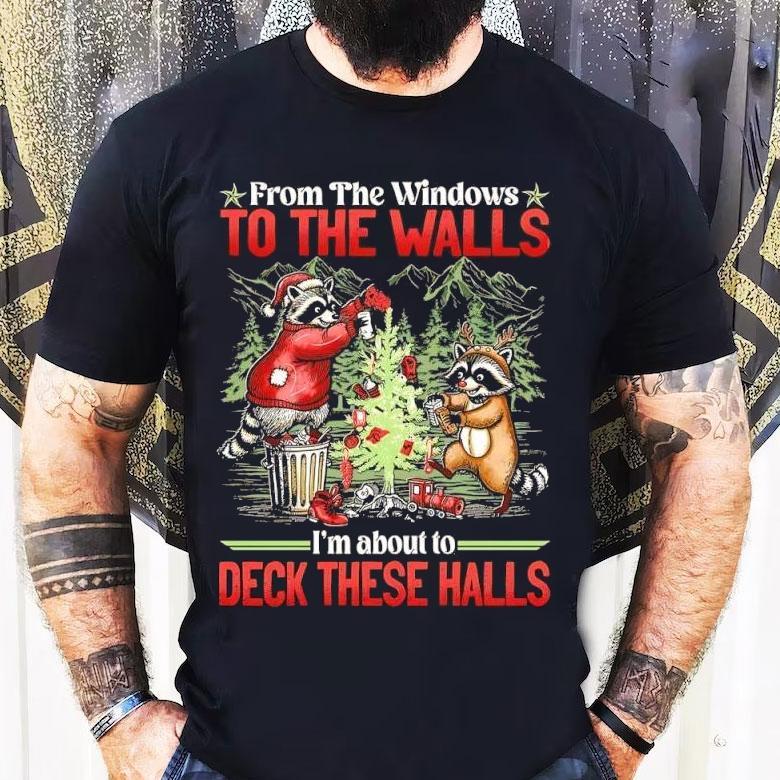 Raccoons Christmas Tree From The Windows To The Walls I’m About To Deck These Halls Shirt