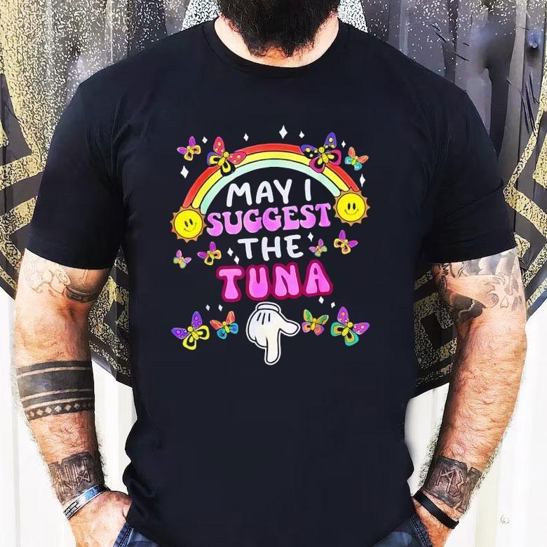 Fashion meets comfort with Rainbow May I Sugget The Tuna Shirt, the vibrant colors of a rainbow bring joy and happiness to anyone who sees it. Just like the Rainbow May I Suggest The Tuna Shirt, which combines all the hues of the rainbow in a stylish and unique design. It’s the perfect shirt to brighten up any outfit and spread positivity wherever you go.