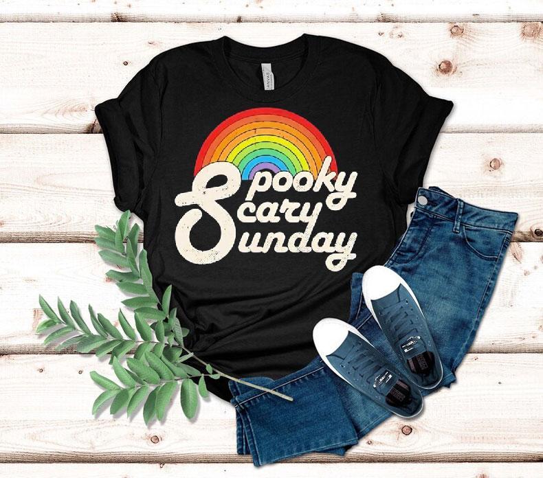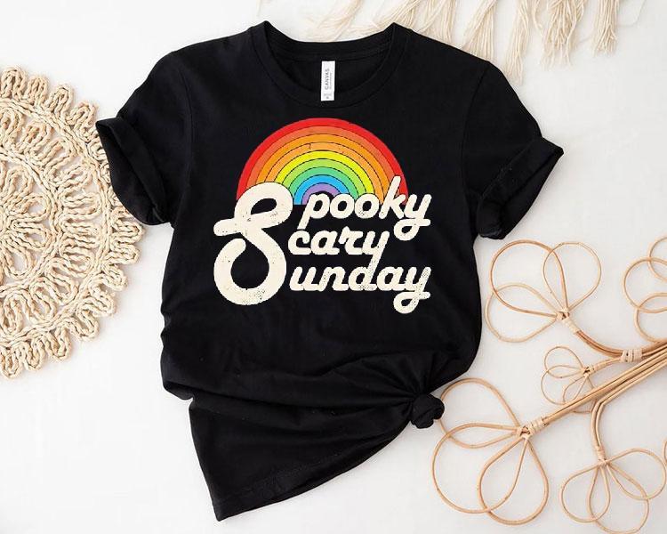 Your style, your way with Rainbow Spooky Scary Sunday Shirt, the perfect way to add a touch of whimsical spookiness to your wardrobe is with the Rainbow Spooky Scary Sunday shirt. With its vibrant rainbow colors and eerie design, this shirt is sure to turn heads and evoke a sense of mystery. Get ready to show off your unique style on Sundays with this eye-catching top.