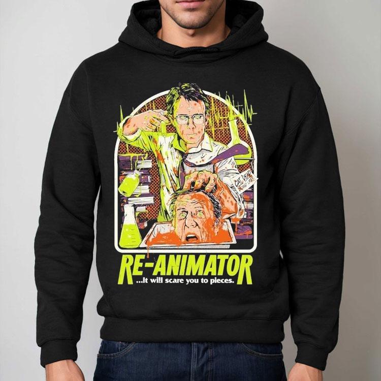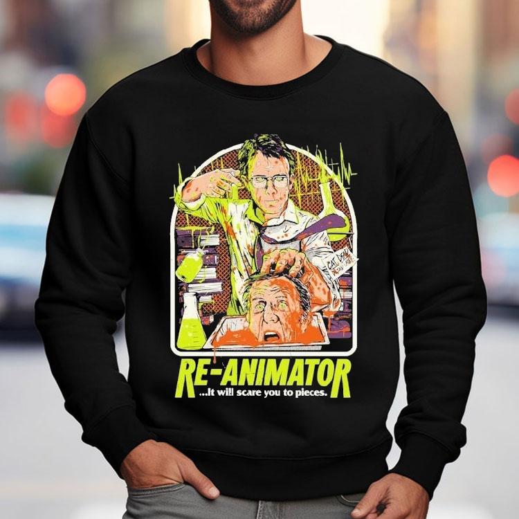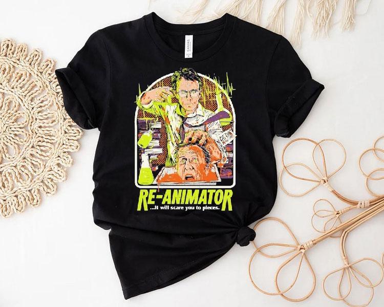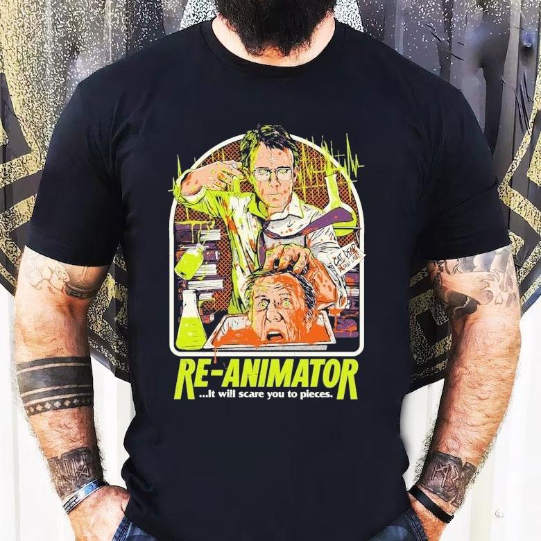Wear it, love it, repeat with Re-animator Talking Head It Will Scare You To Pieces Shirt, welcome to the world of horror and madness, where the dead are brought back to life and the unimaginable becomes a reality. And what better way to celebrate your love for all things creepy than with our Re-animator Talking Head It Will Scare You To Pieces Shirt. Get ready to be thrilled and terrified.