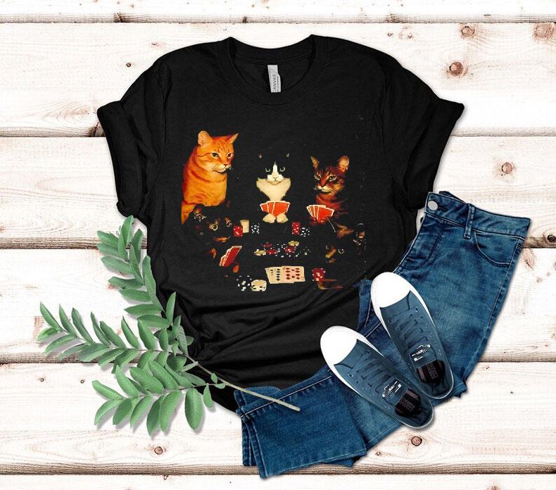 Effortless style, pure simplicity with Retro Funny Cats Playing Poker Meme Graphic Shirt, get ready to take a trip back in time to the era of classic memes with our Retro Funny Cats Playing Poker Meme Graphic Shirt. This cool and quirky tee features everyone’s favorite feline friends engaging in a classic game of poker, sure to bring a smile to any cat lover’s face.