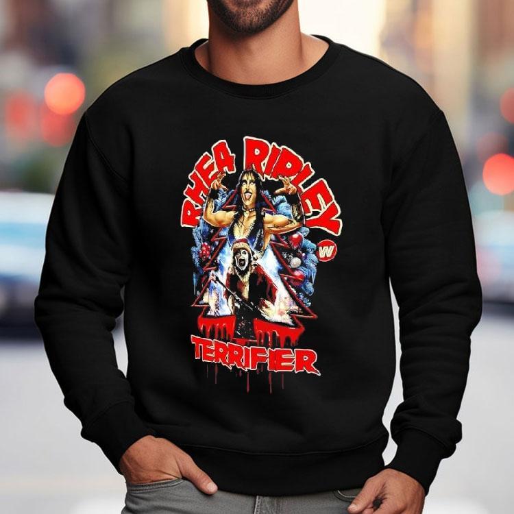 Rhea Ripley And Terrifier Bloody Christmas Collab Graphic Shirt