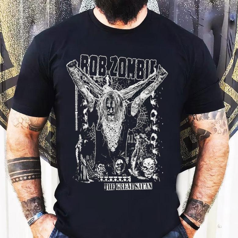 Chic minimalism, always with Rob Zombie The Great Satan Rob Shirt, fans of Rob Zombie and his horror-filled world will rejoice with the release of his newest merchandise item – The Great Satan Rob Shirt. Capturing the essence of his dark and twisted aesthetic, this shirt is a must-have for any hardcore fan. Get ready to unleash your inner demons and rock this devilishly cool shirt.