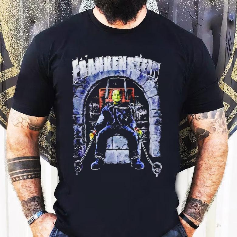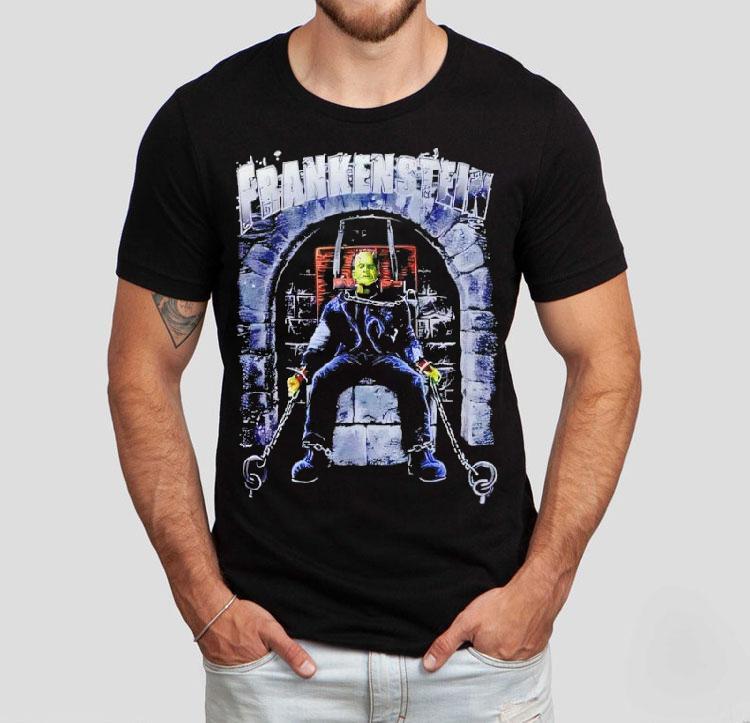 Trendy, timeless tee with Rock Rebel Universal Monsters Frankenstein Chair Shirt, “Get ready to rock and roll with a rebellious twist to the classic Universal Monsters! Introducing the Frankenstein Chair Shirt, a bold and edgy design featuring the infamous creature sitting atop a throne of skulls. This statement piece is a must-have for all rock rebels and monster enthusiasts alike.”