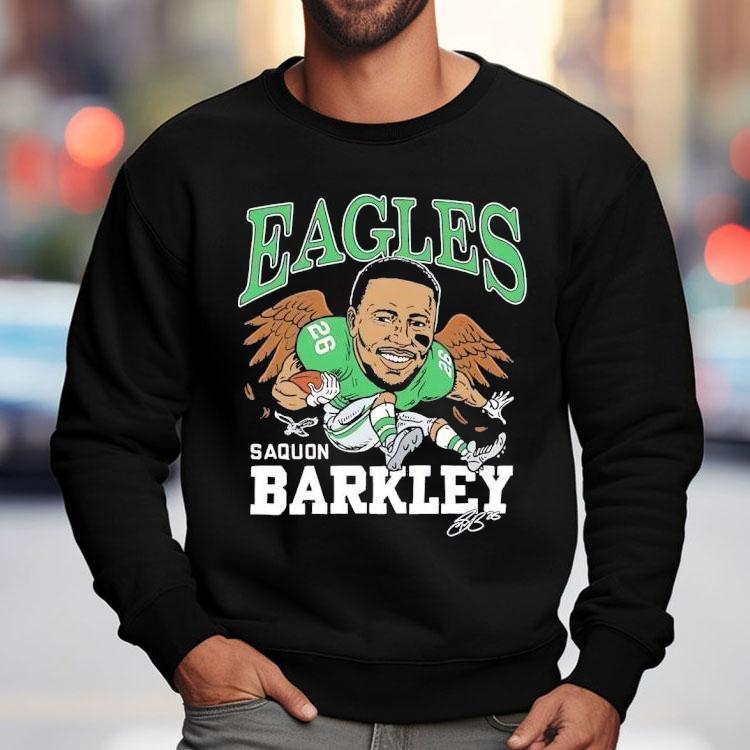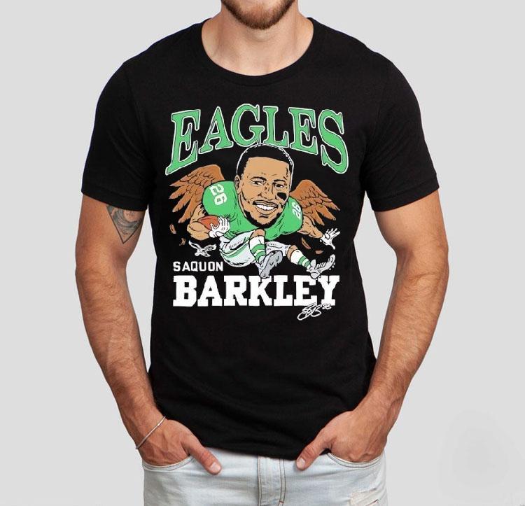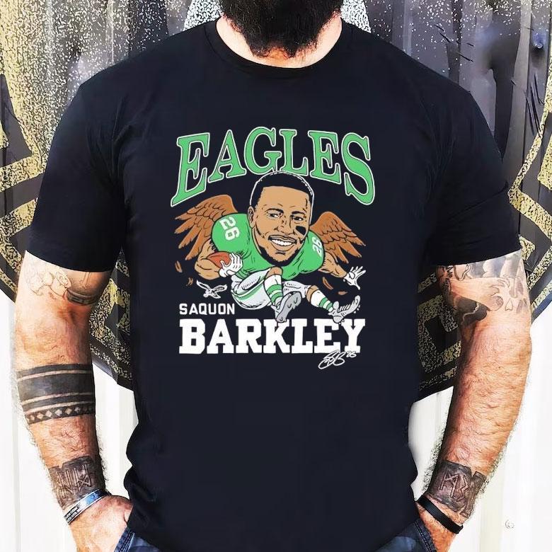 Simple yet versatile fashion with Saquon Barkley Philadelphia Eagles Football Signature Caricature Shirt, get ready, Eagles fans! The hottest new gear has arrived just in time for football season – the Saquon Barkley Philadelphia Eagles Football Signature Caricature Shirt. Show off your team pride in style with this unique and eye-catching shirt featuring the dynamic running back’s signature and a fun caricature design.