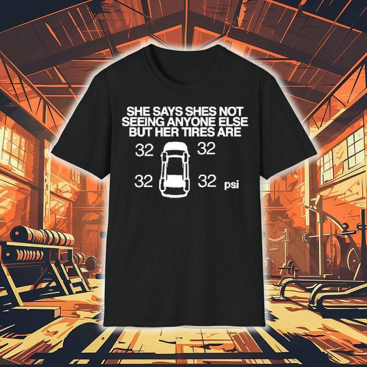 Comfort meets fashion with She Says She Not Seeing Anyone Else But Her Tires Are Shirt, as she sat across the table from me, she looked me straight in the eye and said, “I’m not seeing anyone else.” But as I glanced out the window, I noticed her car’s tires were slashed and the word “shirt” was spray painted on the hood. Something didn’t add up.