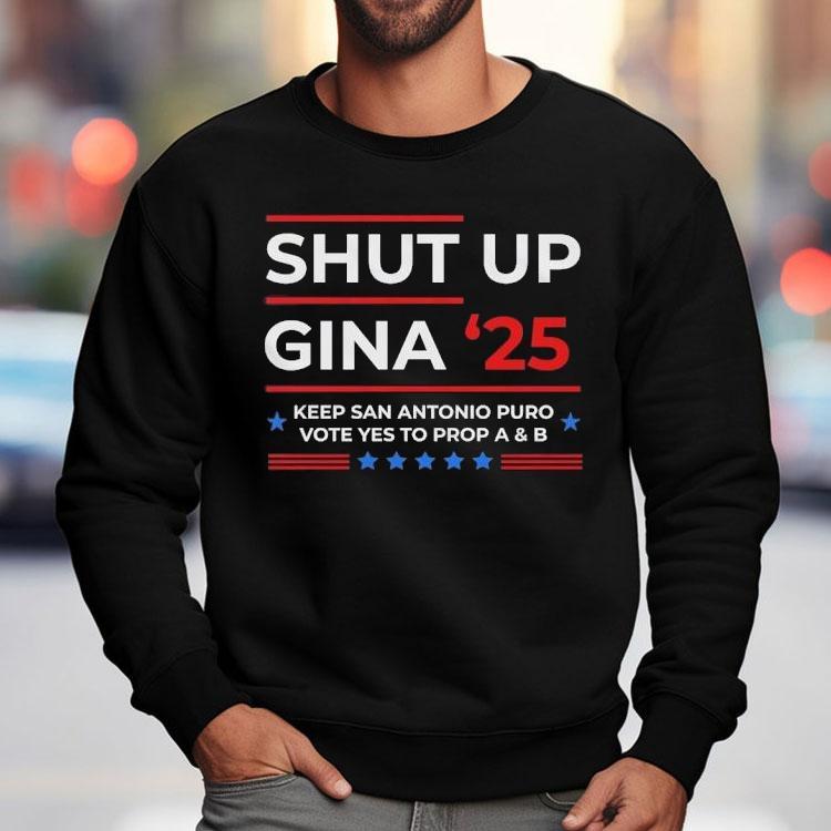 Simple style, big impact with Shut Up Gina 2025 Keep San Antonio Puro Vote Yes To Prop A And B Shirt, in the year 2025, the city of San Antonio is buzzing with excitement as the locals gear up for the upcoming vote on propositions A and B. Among the supporters is Gina, a fierce advocate for keeping the city “puro.” But not everyone is on board with her message – some are telling her to “shut up.” Will Gina and her followers prevail? Find out more with the official “Shut Up Gina 2025 Keep San Antonio Puro” t-shirt. Show your support and vote yes on Prop A and B.
