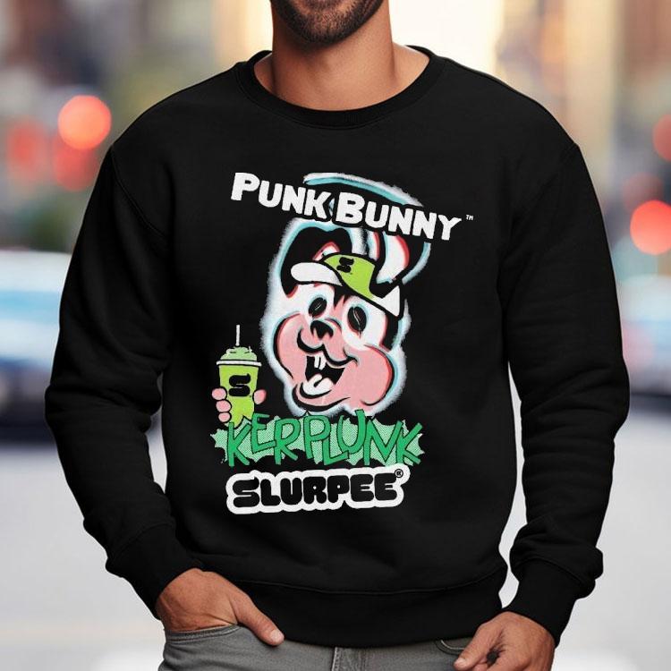 Simple style, big impact with Slurpee X Punk Bunny Kerplunk 7 Eleven Shirt, as the summer heat intensifies, there’s nothing better than cooling down with a Slurpee from 7 Eleven. But this year, the popular convenience store has teamed up with a rebellious twist. Enter the limited edition Slurpee X Punk Bunny Kerplunk 7 Eleven shirt, the must-have item for any punk lover.