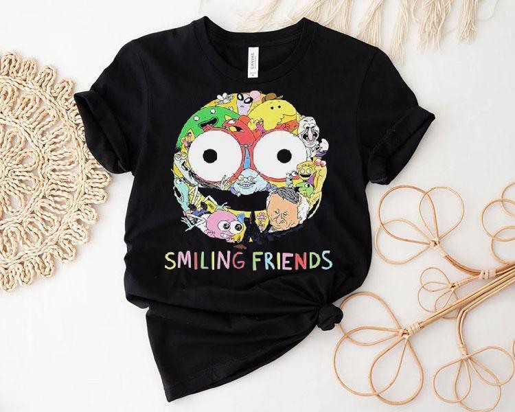 Everyday luxury, casual charm with Smiling Friends Smiley Collage Shirt, get ready to spread some joy and positivity with our new Smiling Friends Smiley Collage Shirt! This fun and vibrant piece features a collage of smiling faces, designed to brighten up your day and everyone around you. Wear it and be a part of the smiling friends club!