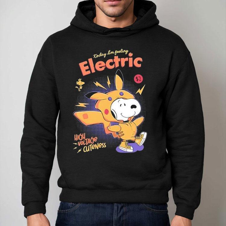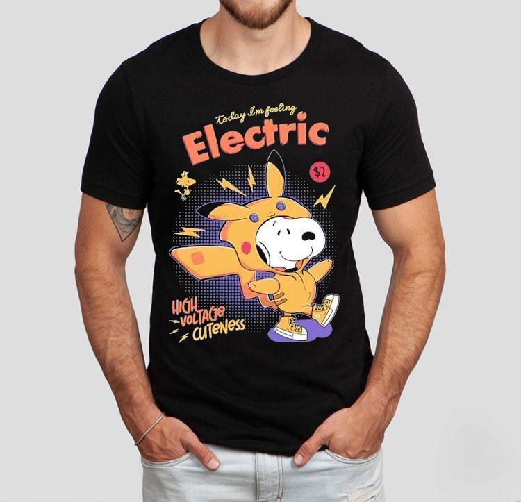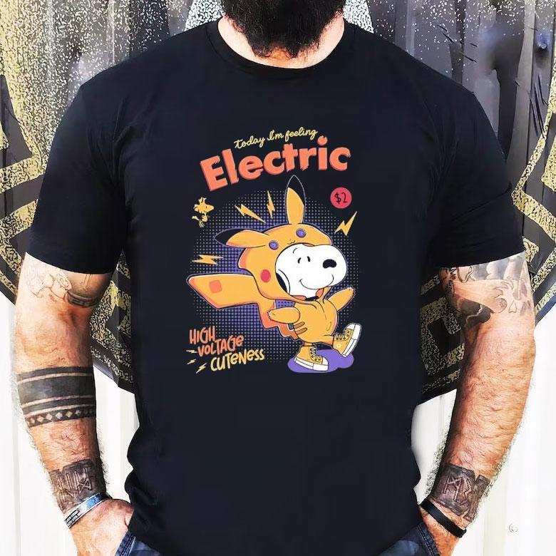 Wardrobe staple, endless style with Snoopy In A Pikachu Costume Today I’m Feeling Electric High Voltage Cuteness Shirt, get ready to feel the ultimate cuteness overload because today Snoopy is donning a Pikachu costume! This lovable beagle is bringing a whole new level of electric high voltage adorableness in his Pikachu outfit. And the best part? You can now show your love for this dynamic duo with the “Today I’m Feeling Electric High Voltage Cuteness” shirt.
