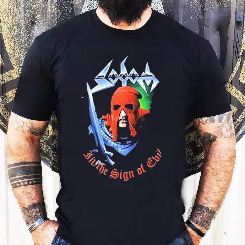 Casual sophistication with Sodom In The Sign Of Evil Shirt, sodom, one of the most influential bands in the thrash metal scene, has released a new shirt design that pays homage to their early days. The “In The Sign Of Evil” shirt showcases the iconic artwork from their 1984 EP and is a must-have for any fan of the band or metal music in general.