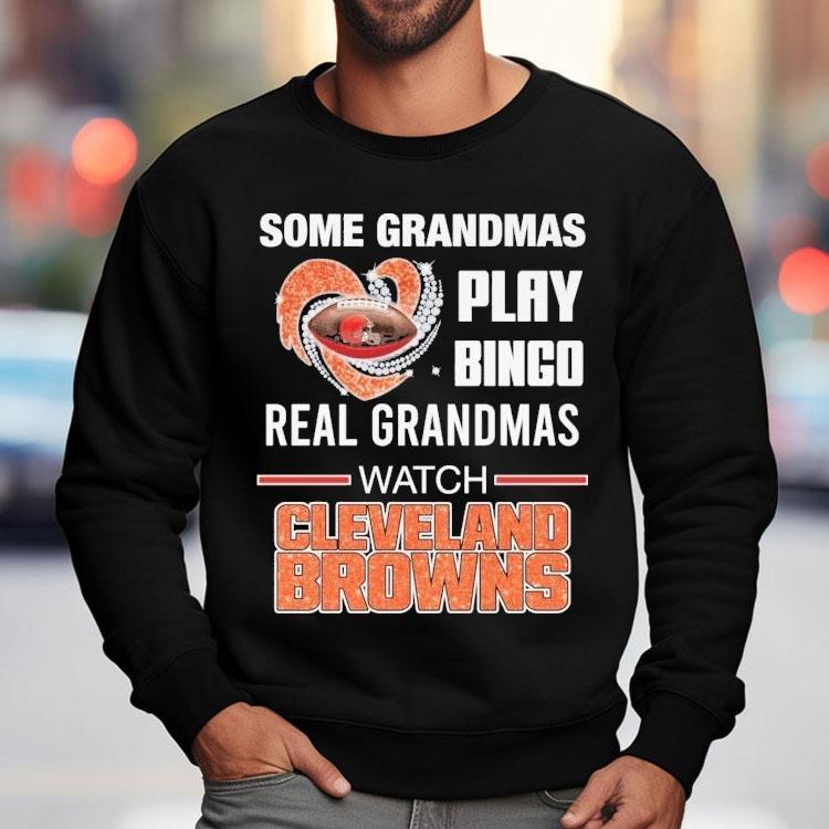 Chic comfort, all day with Some Grandmas Play Bingo Real Grandmas Watch Cleveland Browns Diamond Heart Shirt, grandmas come in all shapes, sizes, and hobbies. While some may enjoy playing a game of bingo, others have a different idea of fun. For the real grandmas out there, their true passion lies in cheering on their beloved Cleveland Browns, proudly displaying their team spirit with a diamond heart shirt.