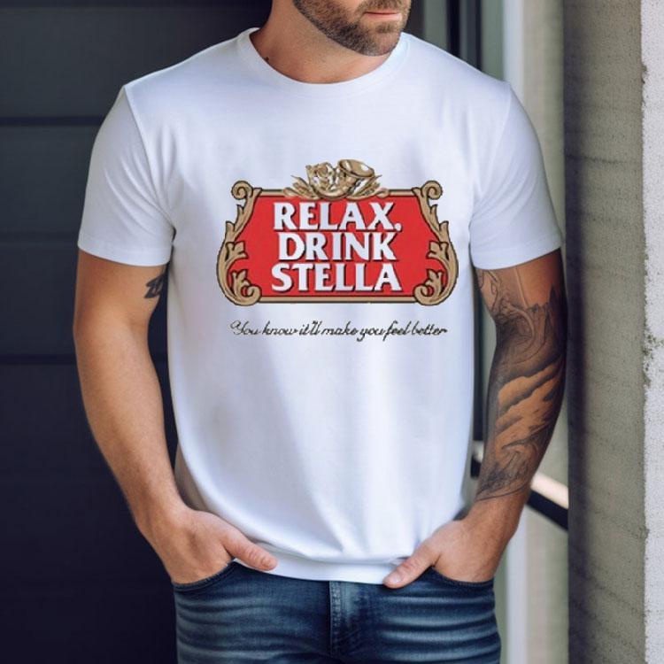 Effortless style, pure comfort with Stella Relax Drink For Instant Good Vibes Tshirt, introducing the ultimate t-shirt for anyone in need of an instant mood boost – the Stella Relax Drink For Instant Good Vibes Tshirt! This comfy and stylish shirt features the iconic Stella Relax branding, reminding you to take a moment and unwind. Wear it and spread good vibes wherever you go!