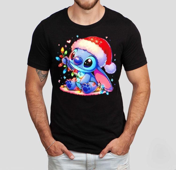 Casual chic, timeless appeal with Stich With Christmas Lights Shirt, as the holiday season approaches, adding a touch of festive flair to your wardrobe has never been easier with the Stich With Christmas Lights Shirt. This playful and unique design features Stich, the lovable Disney character, tangled up in colorful Christmas lights. Get ready to light up the holiday spirit with this fun and cheerful shirt.