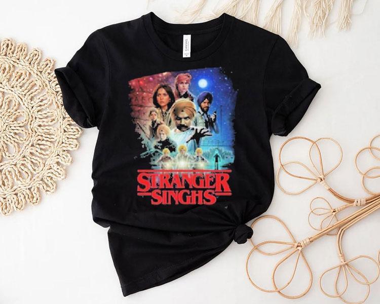 Wearable simplicity, unmatched comfort with Stranger Things Stranger Singhs Shirt, step into the upside down world of fashion with the iconic Stranger Singhs shirt. This unique piece pays tribute to the popular Netflix series, Stranger Things, with its bold colors and retro design. Be prepared to turn heads and transport yourself to the nostalgic 80s with this must-have shirt.