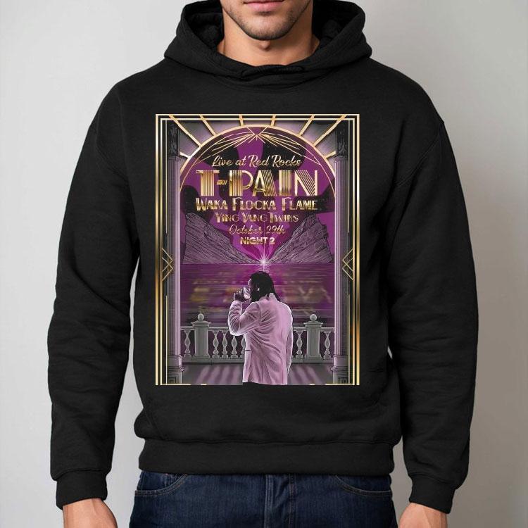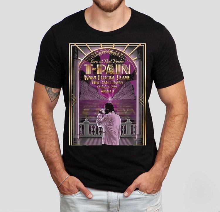 Classic look, contemporary feel with T-pain Live At Red Rocks Park And Amphitheatre.waka Flocka Flame Ying Yang Twins October 29th Shirt, get ready for an unforgettable night as T-Pain takes the stage live at Red Rocks Park and Amphitheatre in Denver on October 29th. The Grammy award-winning artist will be joined by special guests Waka Flocka Flame and the Ying Yang Twins, guaranteeing an epic show filled with hits and high-energy performances. Don’t miss out, grab your tickets now!