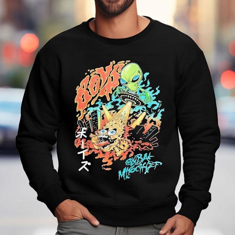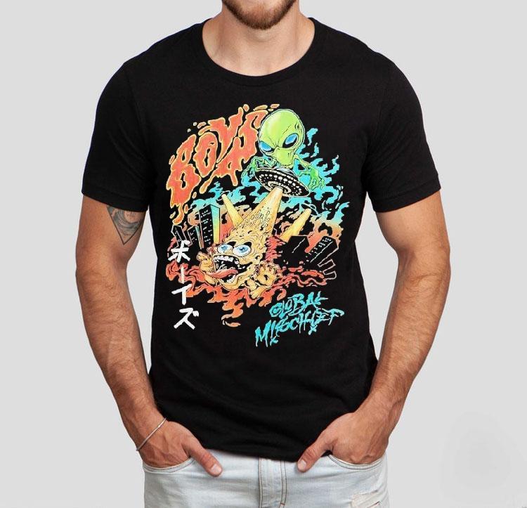 Effortless fashion update with The Boys Global Mischief Alien Shirt, welcome to a world of mischief and adventure with The Boys Global Mischief Alien Shirt. This shirt is not just a piece of clothing, but a symbol of rebellion and independence. Join the infamous boys club as they travel the world causing chaos and embracing their inner alien. Let the mischief begin!