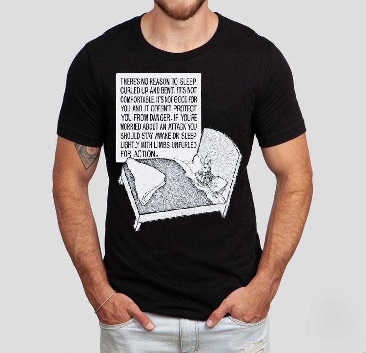 There’s No Reason To Sleep Curled Up And Bent It’s Not Comfortable It’s Not Good For You And It Doesn’t Protect You From Danger Bunny Shirt