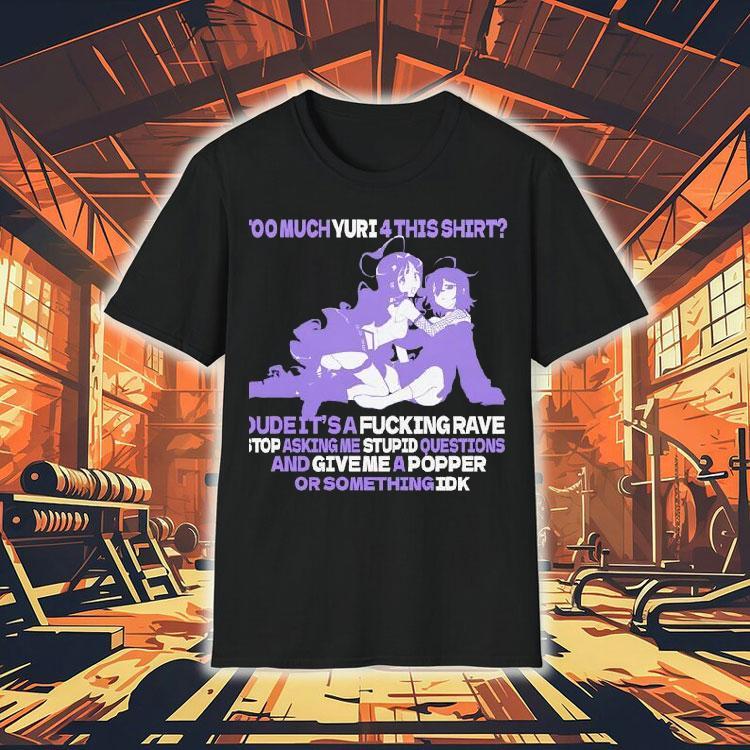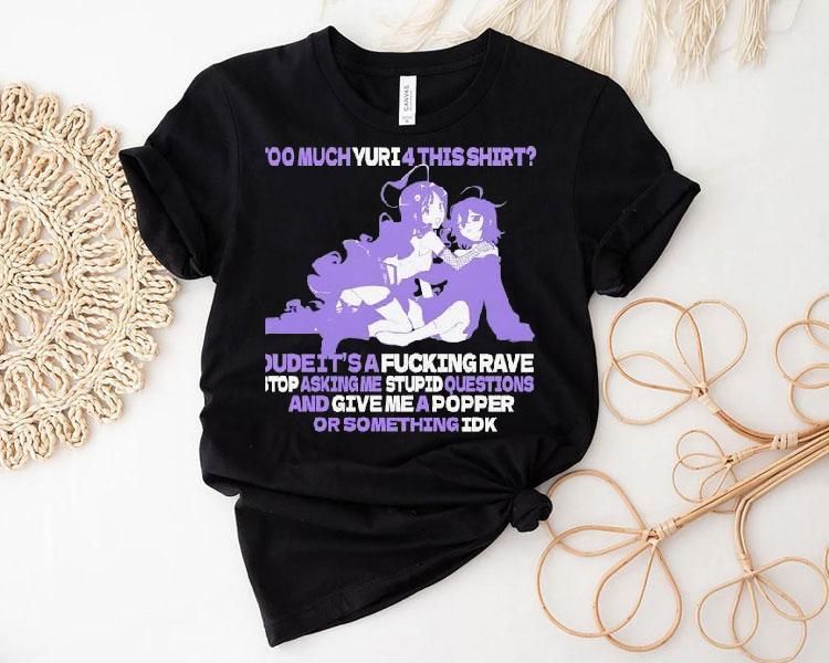 Effortless style, pure comfort with Too Much Yuri 4 This Shirt Dude It’safcking Rave Stop Asking Me Stpid Questions Shirt, are you tired of constantly being bombarded with questions about your funky shirt? Well, sorry to break it to you, but maybe it’s because you’ve got Too Much Yuri 4 This Shirt Dude. But don’t worry, it’s just perfect for a f*cking rave. So please, just stop asking me stupid questions about it.