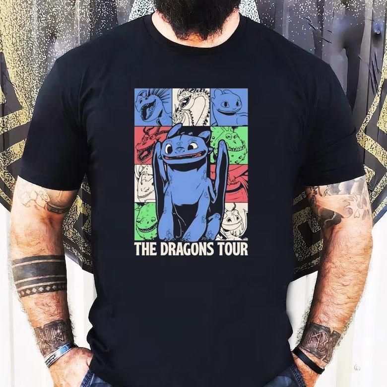 Casual comfort, chic look with Toothless The Dragons Tour Movie Shirt, get ready to embark on an epic journey with Toothless the dragon! Celebrate your love for the fiery and fearless creature with the new Toothless The Dragons Tour Movie Shirt. Featuring bold graphics and comfortable fabric, this shirt is the perfect addition to any movie fan’s wardrobe.