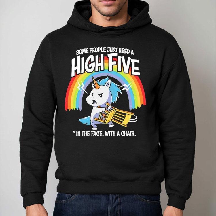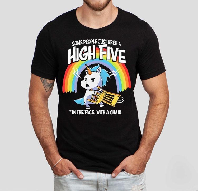 Dress it up or down with Unicorn Rainbow Some People Just Need A High Five In The Face With A Chair Shirt, unicorns and rainbows may seem like a magical combination, but sometimes dealing with difficult people can make you want to throw a chair. If you’re tired of dealing with negativity, our “Some People Just Need A High Five In The Face With A Chair” shirt can help you express your frustration in a lighthearted way.