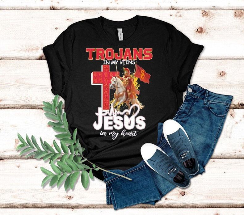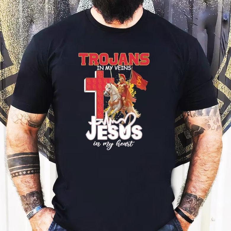 Usc Trojans Football In My Veins Jesus In My Heart Shirt