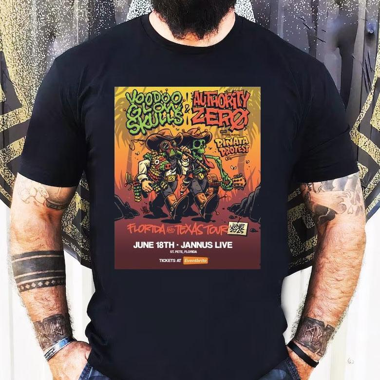 Effortlessly stylish with Voodoo Glow Skulls Authority Zero Jun 18 2025 Jannus Live Cowboy Skeleton Shirt, get ready for a night of high-energy punk rock as Voodoo Glow Skulls and Authority Zero come together on Jun 18, 2025 at Jannus Live. Embrace the energetic vibes and don’t forget to wear your cowboy skeleton shirt for some extra flair. This is a show you won’t want to miss!